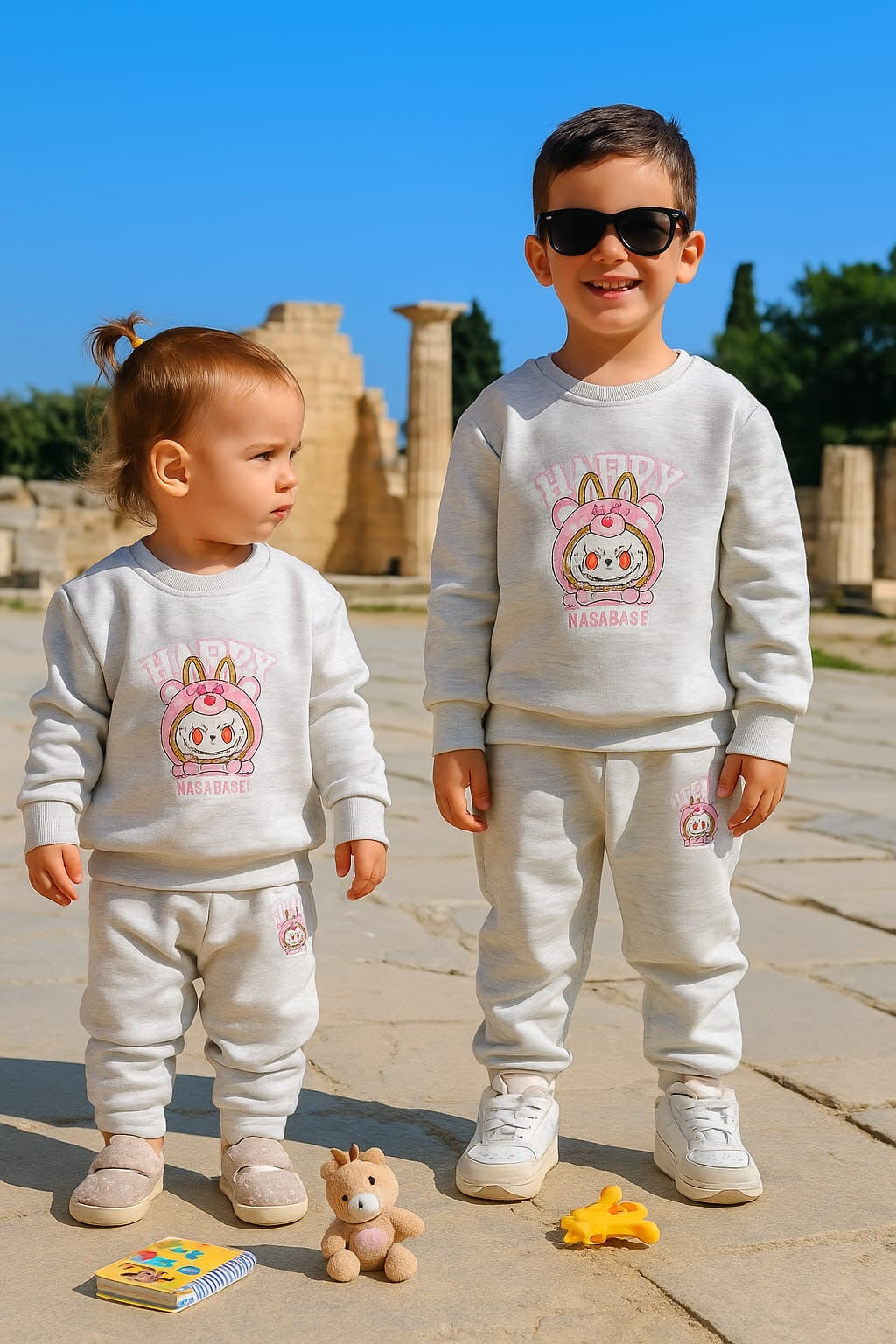This children's track suit is made of soft fleece material, providing warmth and comfort while your little one plays and stays active. Designed for durability and breathability, this track suit is ideal for any outdoor activity or sport. Keep your child cozy and stylish with Grey Labubu.