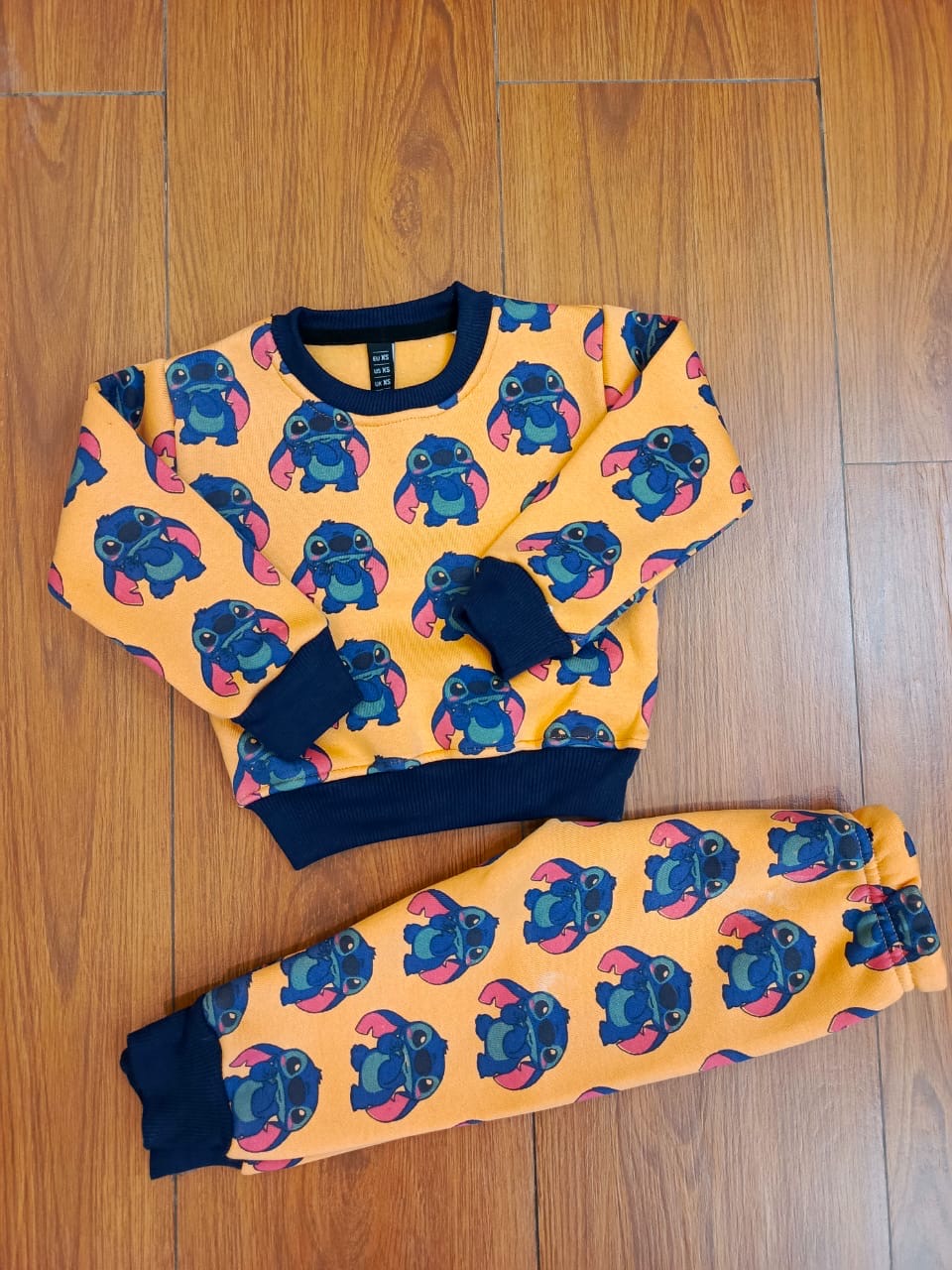This kids fleece track suit is designed for comfort and warmth. Made with soft fleece material, it provides a cozy feel while keeping your child warm. Perfect for outdoor activities or just relaxing at home. Stay stylish and comfortable with this orange cartoon track suit.