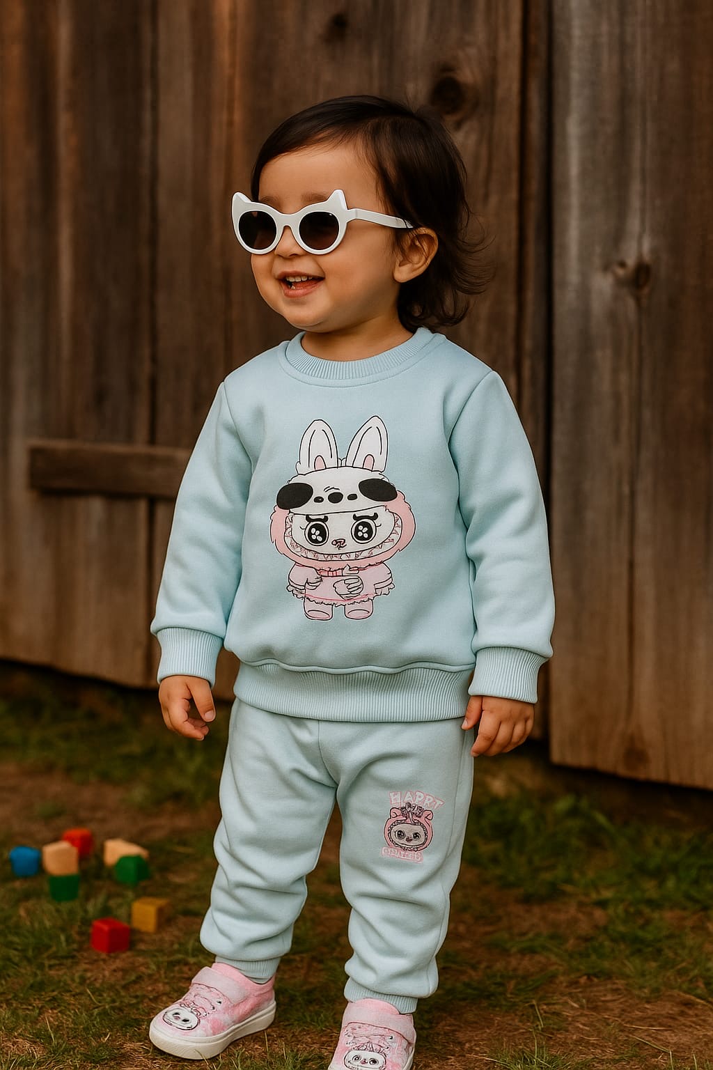 Made with soft fleece material, this sky blue track suit is perfect for active kids. Keep them comfortable and warm whether they're running around or playing sports. With its durable design and cozy fabric, it's the ideal choice for any young athlete.